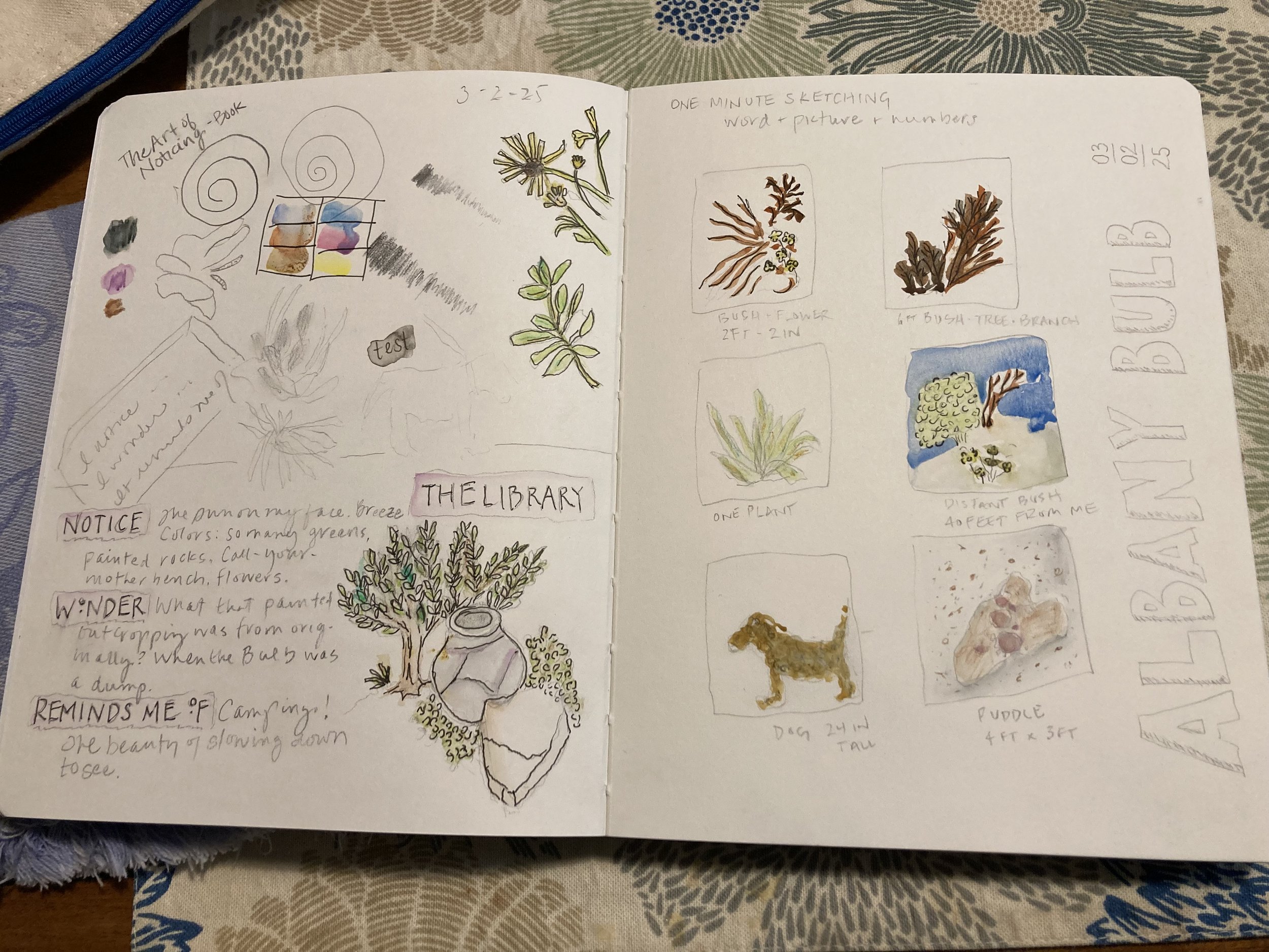 Nature Journal Pages from the Spring/Summer 2025 Albany Bulb Nature Journal Club